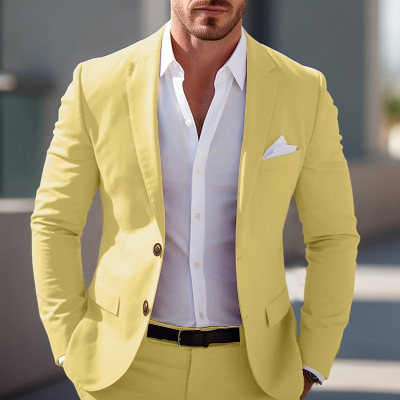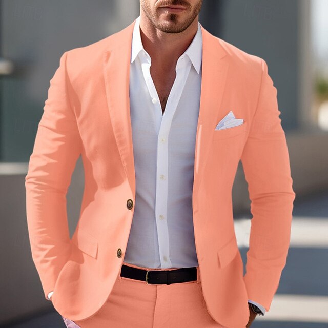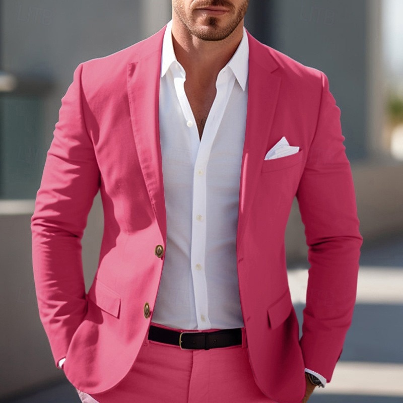 More information about Men's Graduation Blazer Business Cocktail Party Wedding Party Fashion Casual Spring & Fall Polyester Solid Color Pocket Buttons Comfortable Single Breasted Blazer Light Pink Yellow Pink Royal Blue