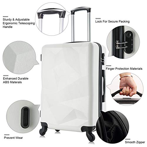 Icoget Luggage Sets 4pcs - Suitcase Sets w/Spinner Wheels - ABS Hardshell Lightweight Luggage w/Secure TSA Lock - 18”/20”/24”/28” - White 3