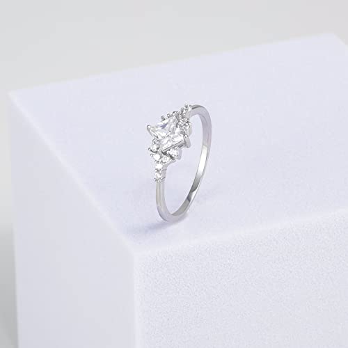 Princess Cut 3A Cubic Zirconia Engagement Rings 925 Sterling Silver Wedding Ring for Women 18K White Gold Plated Promise Bridal Ring for Her 7