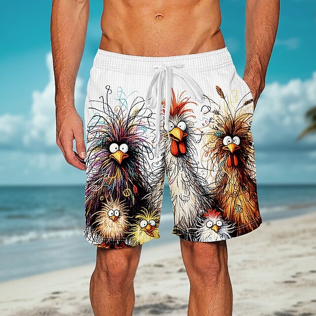 HOT ! Men's Animal Chick Funny Waffle Shorts Sweat Shorts Casual Shorts Mid Waist Fashion Casual Vacation Jogging Workout Elastic Drawstring Waist Shorts with Pockets Designer Clothing Apparel