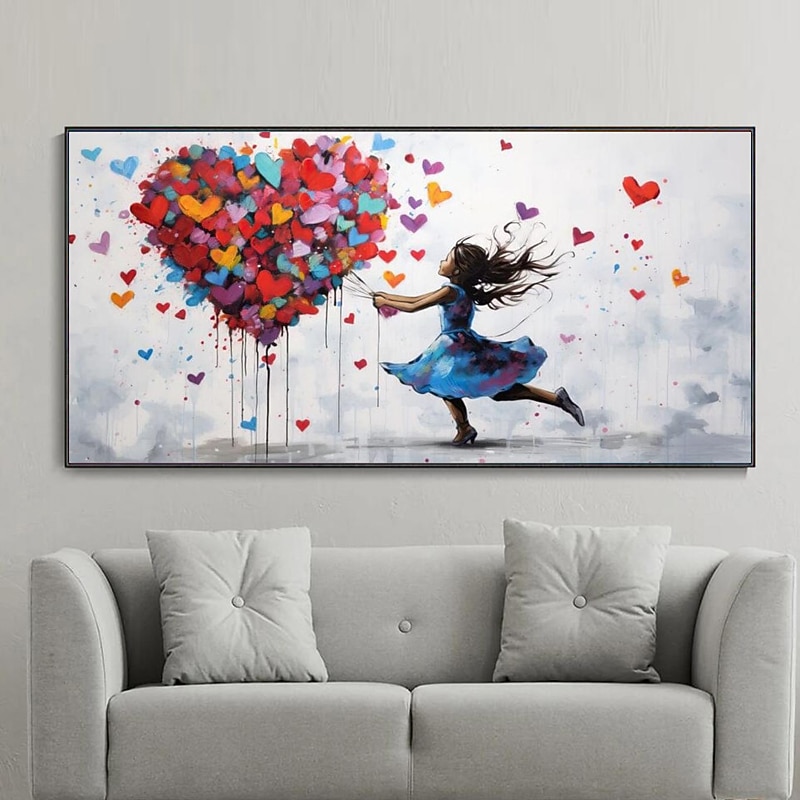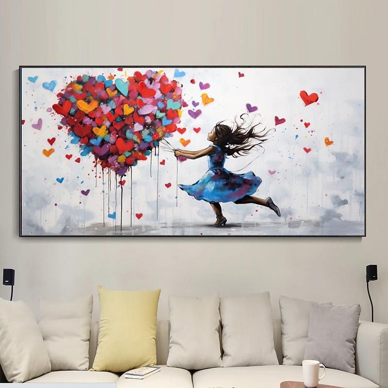 HOT ! Large Balloon Girl Dream Big Dreams Graffiti Canvas Wall Art Handpainted Gril Oil Painting Street art Handmade Graffiti Art Dreams On Canvas For Home Decor No Frame