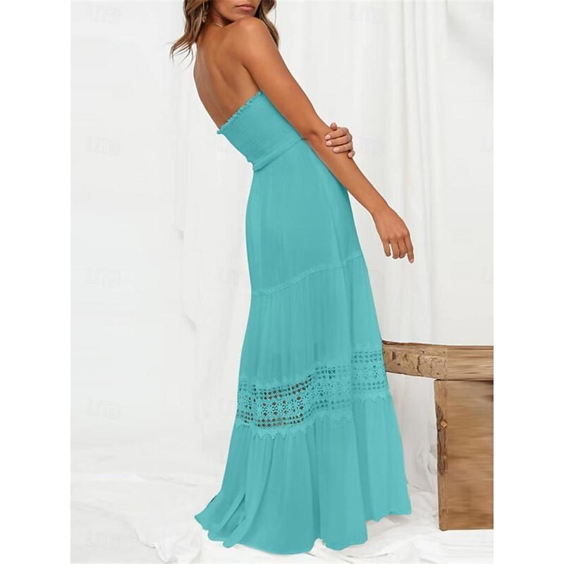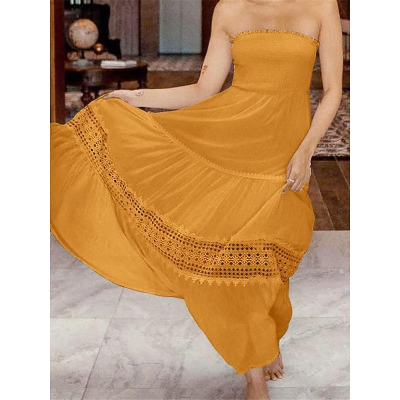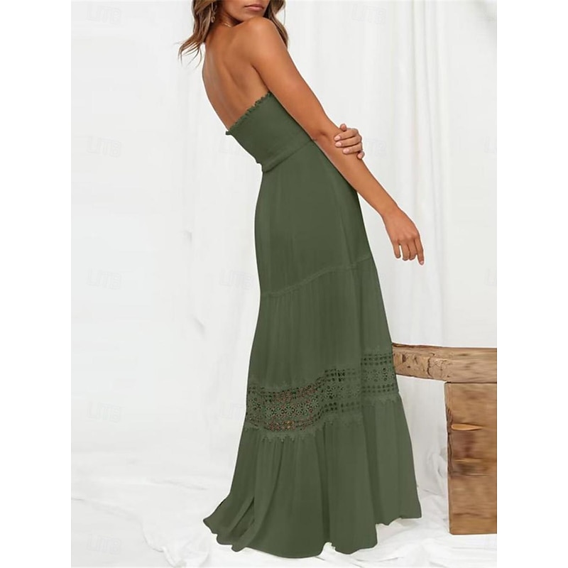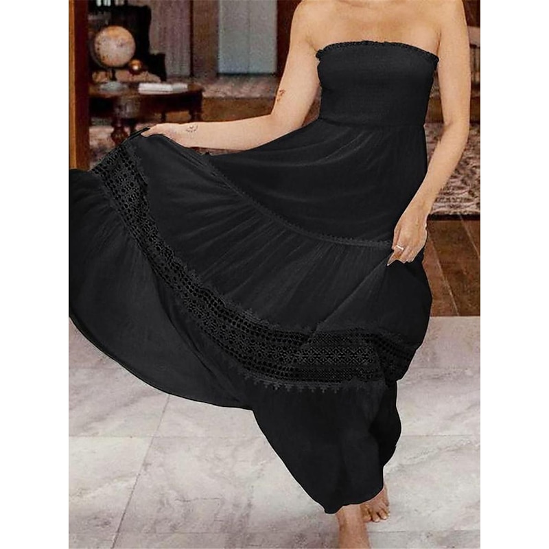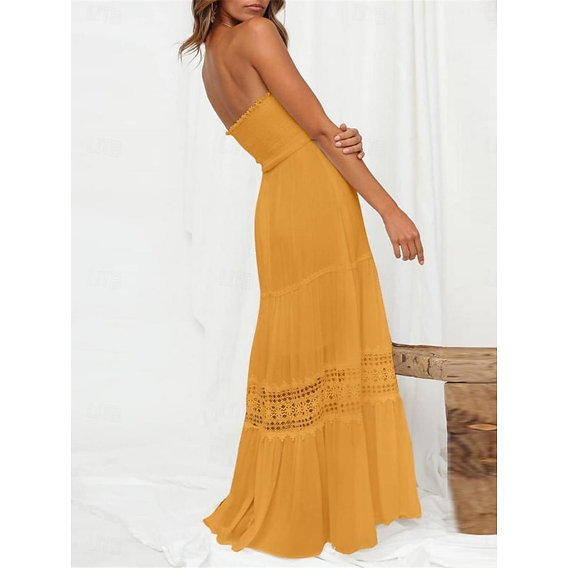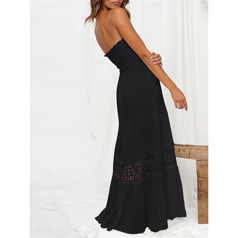 More information about Women's Long Dress Maxi Dress White Dress Casual Dress White Lace Wedding Dress Boho Dress Elegant Streetwear Maxi Street Date Loose Fit Plain Sleeveless Strapless Black White Yellow Mint Green Summer