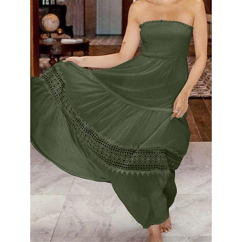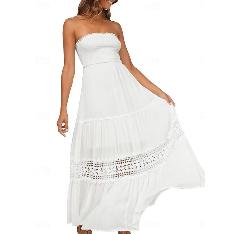 Women's Long Dress Maxi Dress White Dress Casual Dress White Lace Wedding Dress Boho Dress Elegant Streetwear Maxi Street Date Loose Fit Plain Sleeveless Strapless Black White Yellow Mint Green Summer