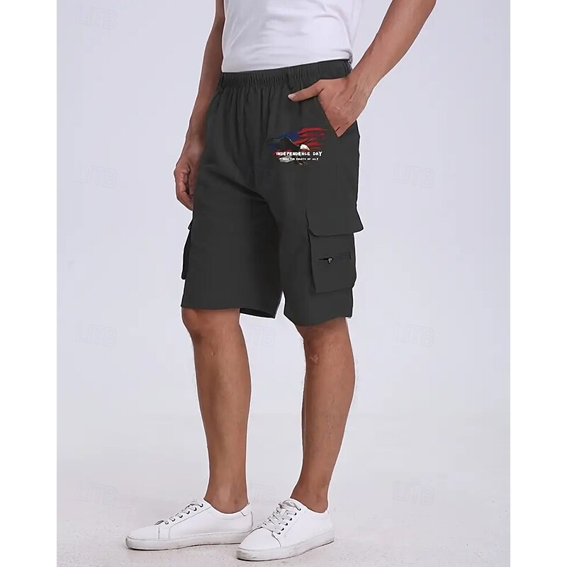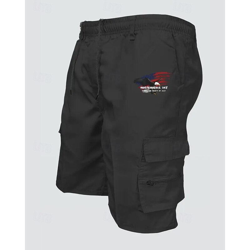Men's Cargo Shorts Shorts Summer Shorts Drawstring Elastic Waist Multi Pocket Eagle National Flag Comfort Wearable Knee Length Outdoor Sport Daily Fashion Casual Black Navy Blue 10
