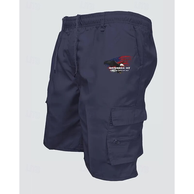 Men's Cargo Shorts Shorts Summer Shorts Drawstring Elastic Waist Multi Pocket Eagle National Flag Comfort Wearable Knee Length Outdoor Sport Daily Fashion Casual Black Navy Blue 23