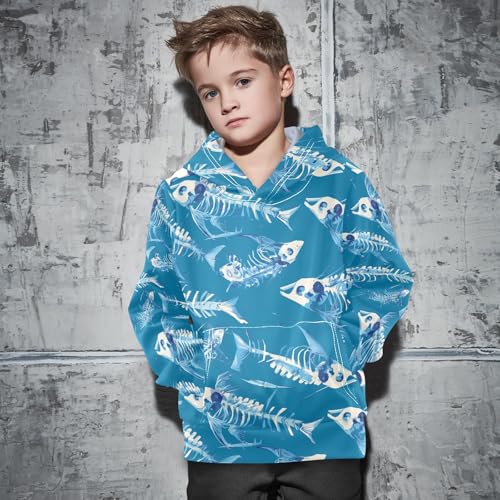 Dead Fish Skeletons Unisex Kids Sweatshirts Sweater Fashion Pullover Hoodie with Kangaroo Pocket 5