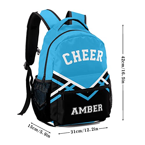 HOT ! Personalized Cheerleaders Blue Black with Name Text Custom Backpack for Sport Camping Picnic, 12.2(L)x5.9(W)x16.5(H) Inch