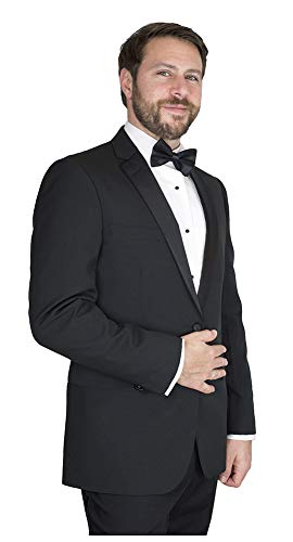 • MODERN, FORMAL and HIGH QUALITY : Behold! This jacket is tailored to the High Standards of Sir Gregory. Our Fitted Black Tuxedo Jacket has a cloth covered Button and matching Satin Trim accents. It is fully lined and includes telescopic sleeve construction for easy length adjustments. The updated jacket fit features a narrower satin lapel, tapered sleeve and a modern button stance.