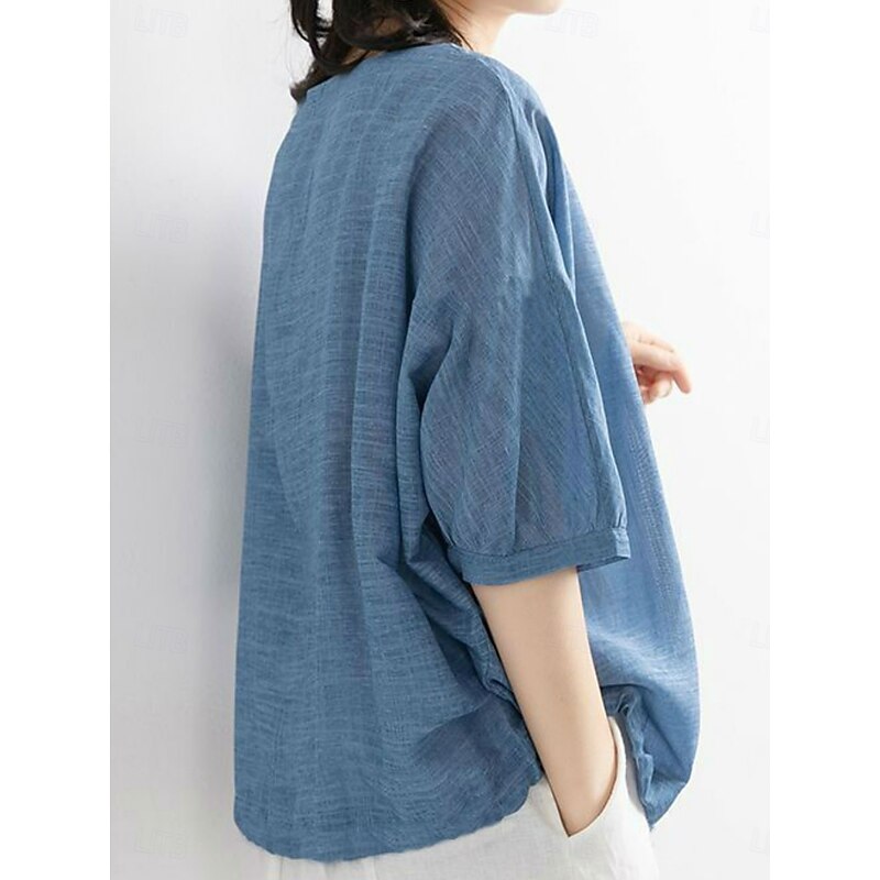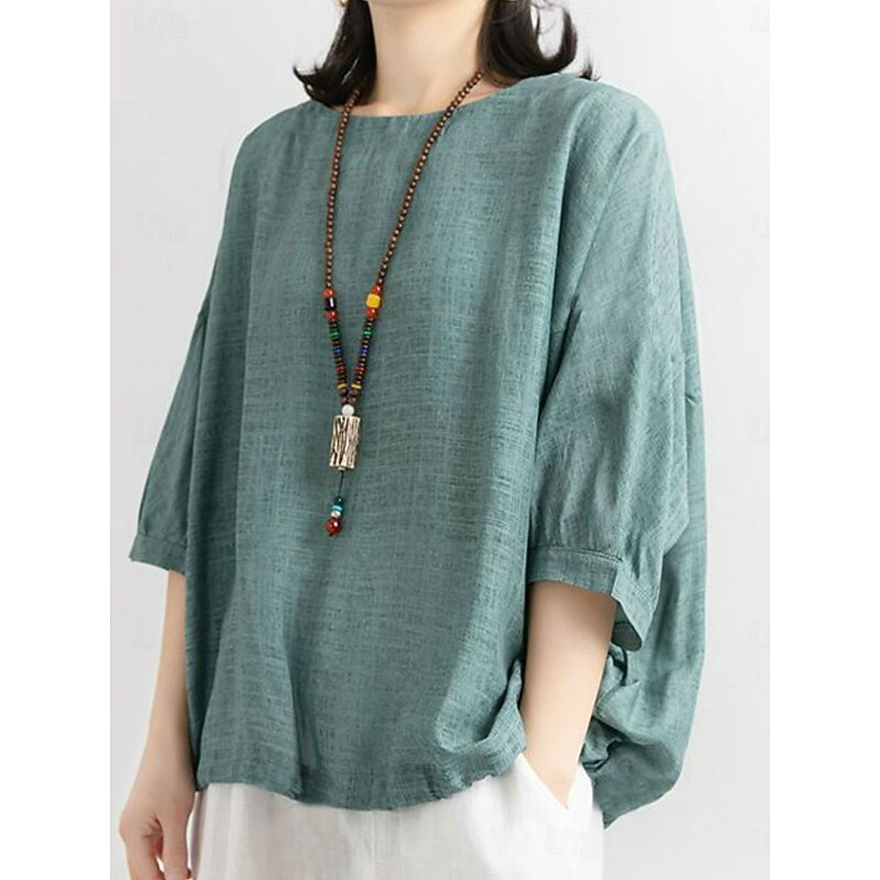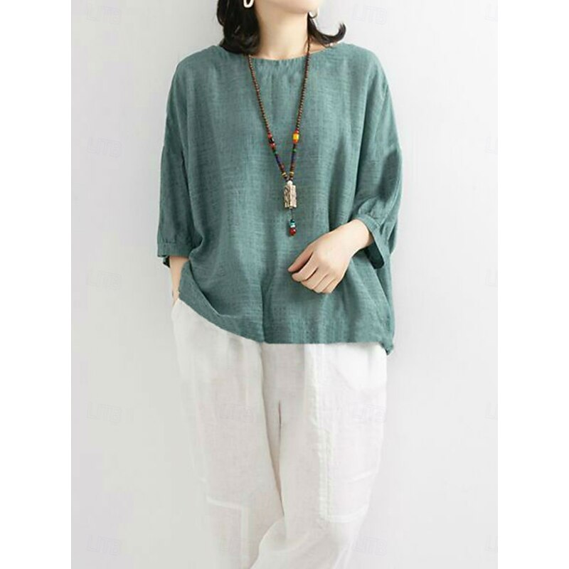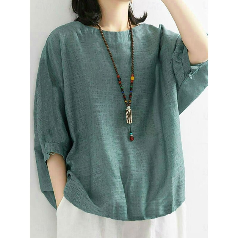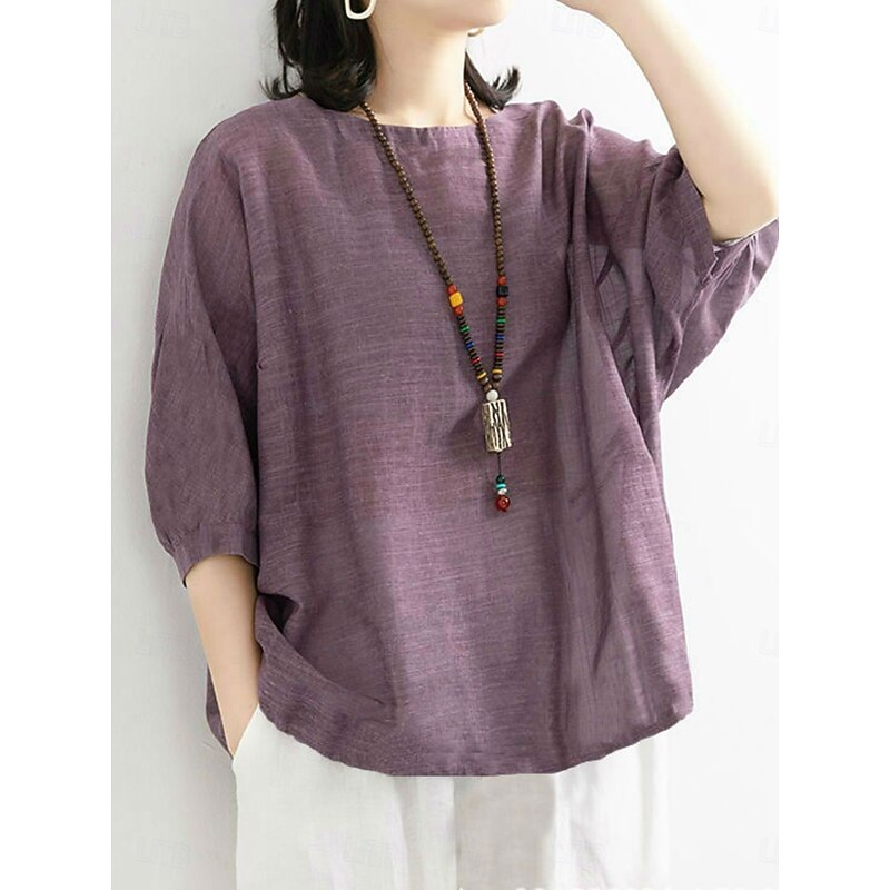 More information about Women's Shirt Solid Color Stylish Casual 3/4 Length Sleeve Crew Neck Regular Tops Daily Pink Blue Purple Green Summer Spring