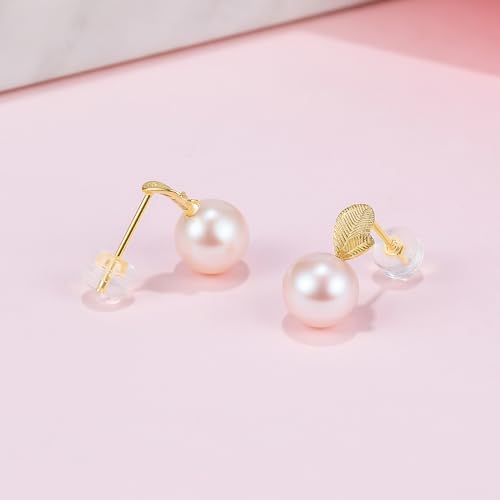 18K Gold Earrings Pearl Drop Earrings Studs Yellow Gold Women Stud Earrings Leaf Studs for Women Her KHPB095120