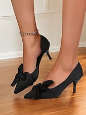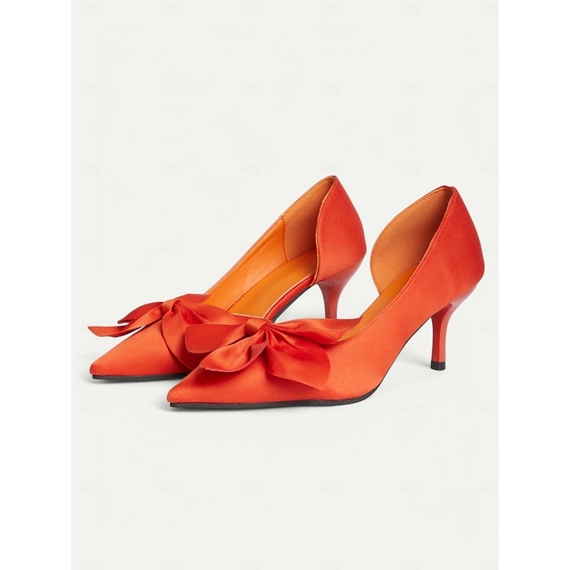 More information about Women's Elegant Red Satin Bow Pointed-Toe Heels – Classic Stiletto Pumps for Weddings, Parties, and Formal Events