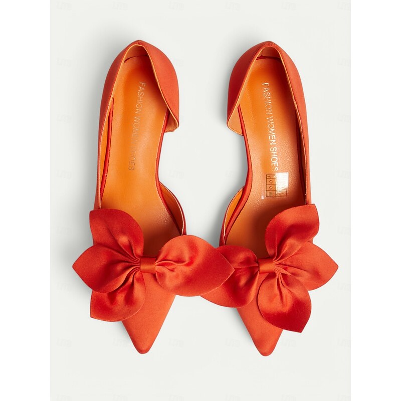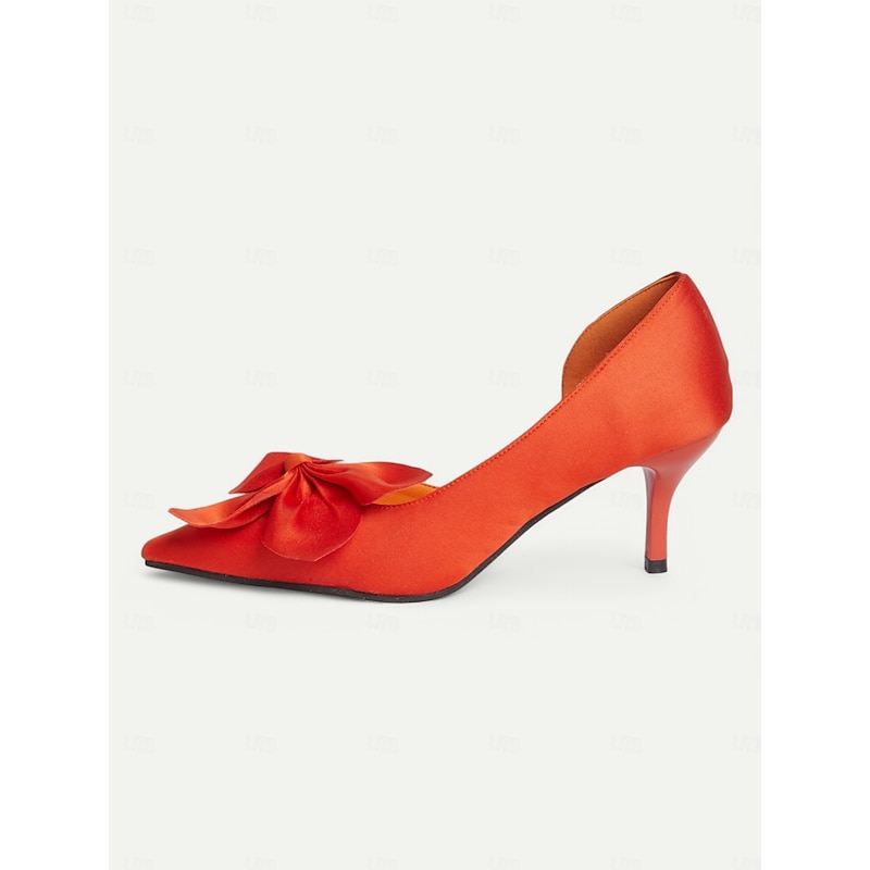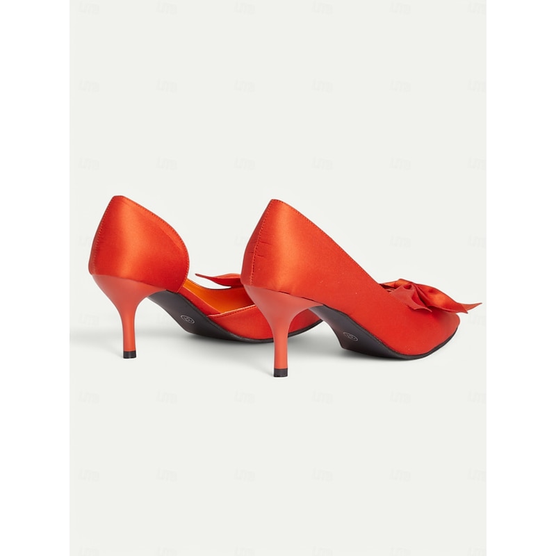 Women's Elegant Red Satin Bow Pointed-Toe Heels – Classic Stiletto Pumps for Weddings, Parties, and Formal Events 12