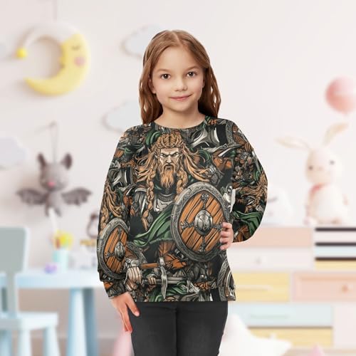 JUNZAN Viking Retro Vintage Pattern Kids Girls Hoodie Sweatshirt Crewneck Sweatshirts for Boys Sports 4T