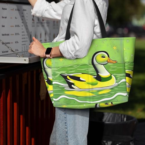 HOT ! Green Duck Large Capacity Beach Travel Bag, Foldable Beach Bag with Zipper, Great for Grocery Bag Pool Gym Travel Shopping