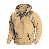 More information about Men's Hoodie Quarter Zip Hoodie Tactical Hoodie Black Army Green Navy Blue Camel Hooded Plain Pocket Quarter Zip Sports & Outdoor Casual Daily Streetwear Cool Designer Fall & Winter Clothing Apparel