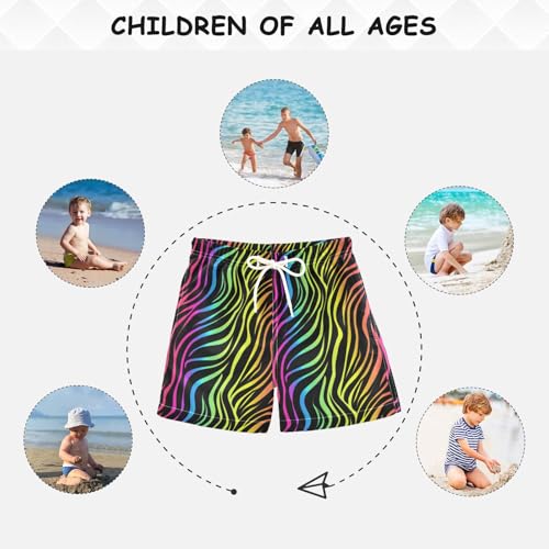 Boys Swim Trunks Rainbow Abstract Zebra Beach Board Shorts Quick Dry Swimsuit Toddler Kid Teen 4