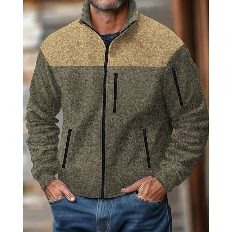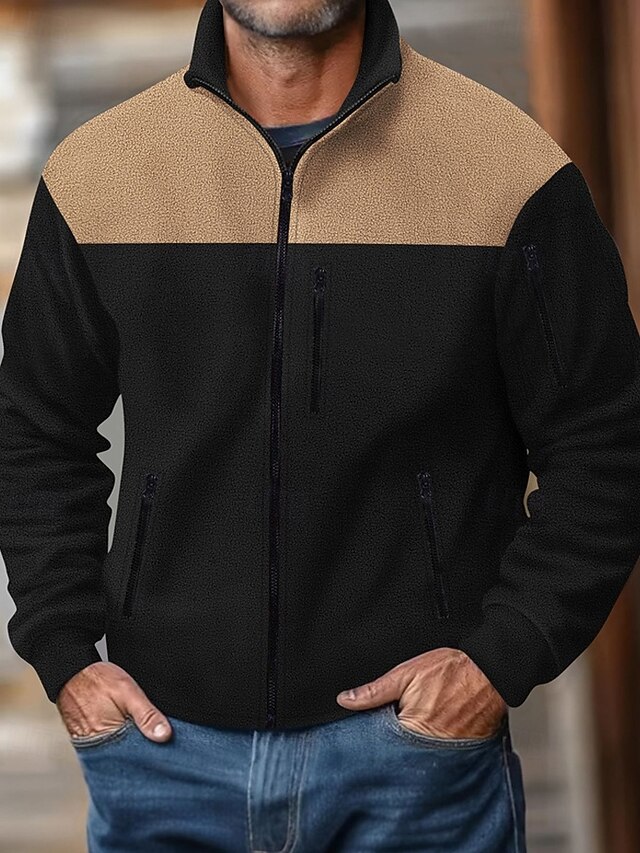More information about Men's Lightweight Jacket Casual Jacket Vacation Daily Wearproof Pocket Fall & Winter Color Block Fashion Classic Stand Collar Regular Black Navy Blue Khaki Army Green Gray Jacket