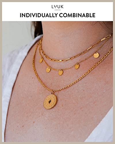 • MODERN DESIGN: Beautiful stainless steel necklace with a timeless design in gold color; The necklace is feminine, elegant and can be combined with many outfits; Thanks to the elegant packaging, this necklace is perfect as a gift for your darlings