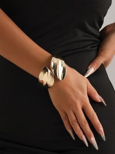 • [Bold and Beautiful Design]: This wide chunky gold cuff bangle bracelet makes a striking statement, perfect for adding a touch of glamour to any outfit.