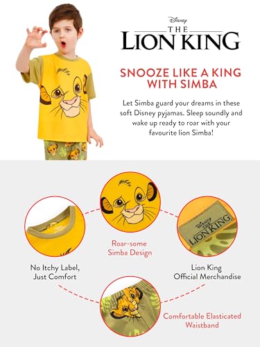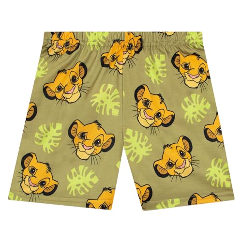 • Comfortable And Stylish Pjs For Boys: The matching pajama shorts have a cosy elasticated waistband as well as a fun pattern of Simba and green leaves on a khaki green base, providing both comfort and a roar-some look