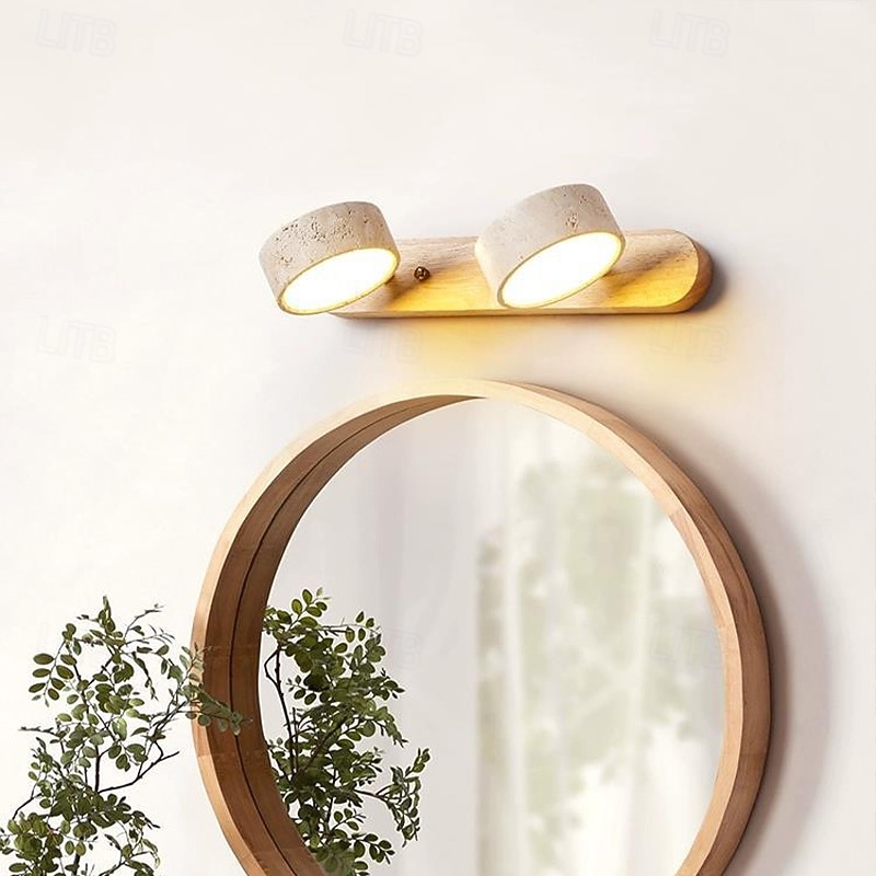 Wood Wall Sconce Wall Light Vanity Light with Rotatable Cylinder Lampshade Over Mirror Wall Lighting 110-240V 1