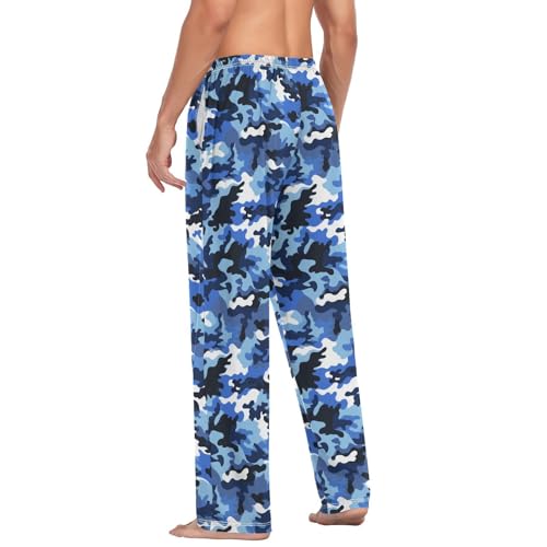 Men's Pajama Pants,Blue White Camouflage Lounge Lightweight Sleep Bottoms Pants with Pockets Size S-XXL 1