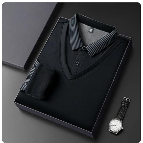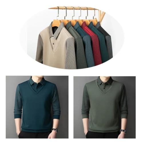 HOT ! Men's False Two Piece Lapel Knit Sweater,Striped Lapel False Two Piece Knit Sweater,Men's Lapel Sweater