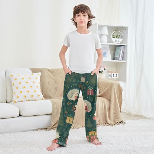 ZZXXB Xmas Hedgehog Tree Boys Long Pants Soft Trousers Elastic Waist Kids Lounge Bottoms with Pockets S-XL 6