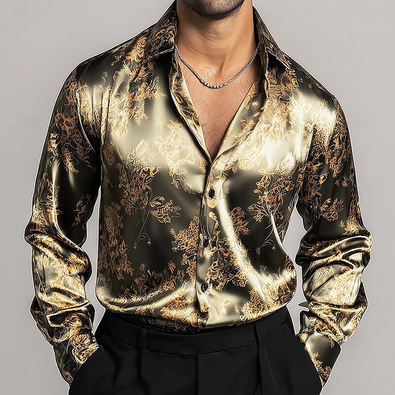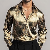 More information about Men's Ethnic Intricate Floral Flowers Shirt Satin Shirt Dress Shirt Long Sleeve Vintage Retro Vacation Dailywear Summer Spring Fall Turndown 3D Print Button Up Shirts Blue Purple Gold Light Grey Gray
