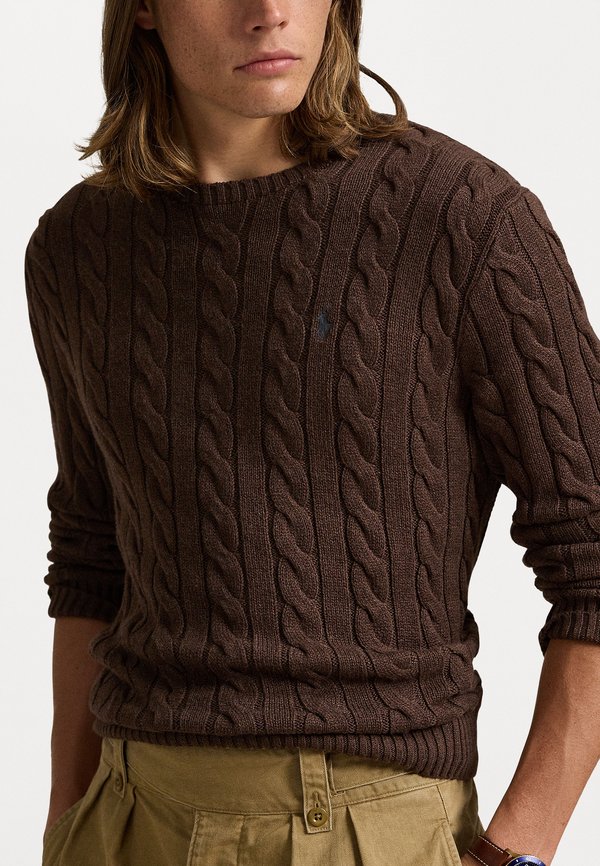 HOT ! CABLE KNIT COTTON JUMPER - Jumper - dark roast melange