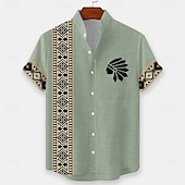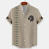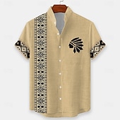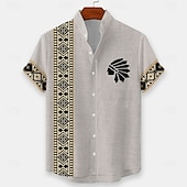 Men's Geometric Indian Ethnic Shirt Button Up Shirt Stand Collar Shirt Short Sleeve Vintage Retro Vacation Dailywear Beach Wear Summer Spring Mandarin Collar 3D Print Linen Like Shirt Yellow Light 10