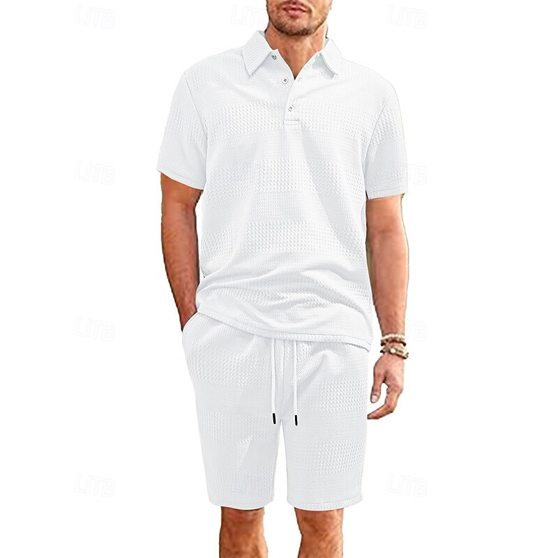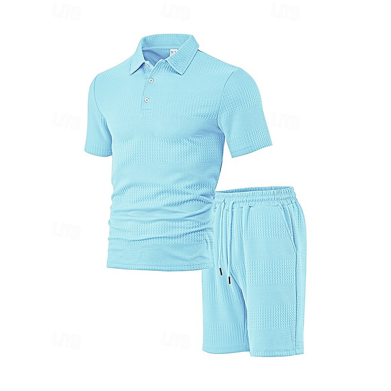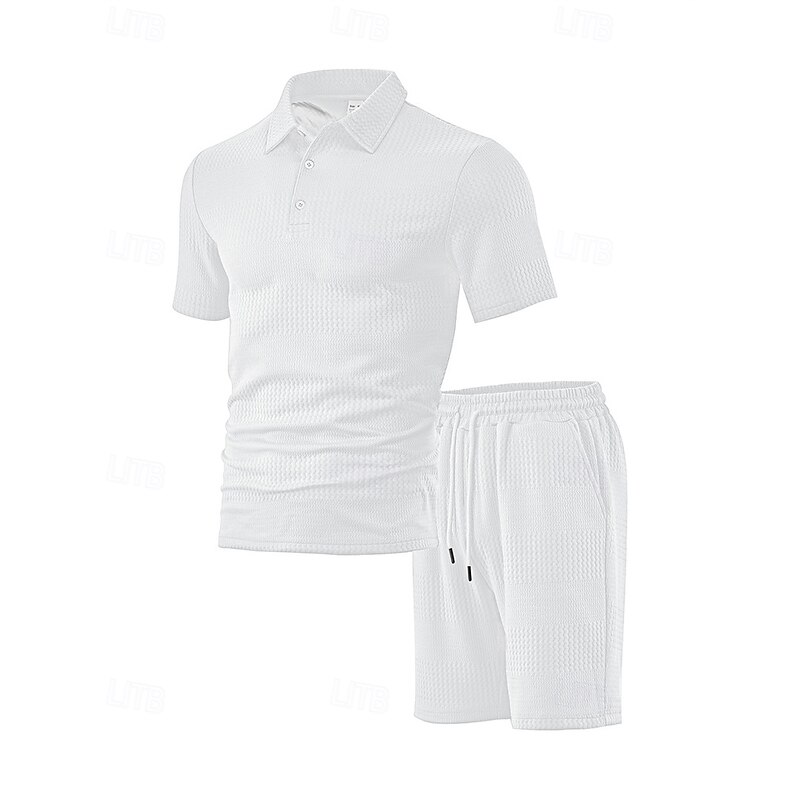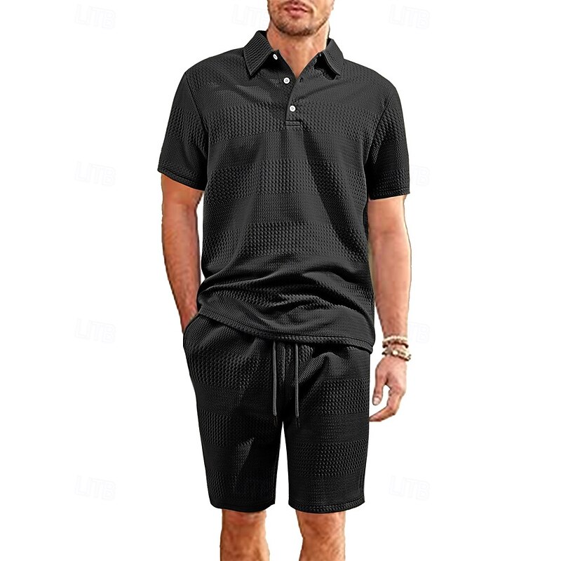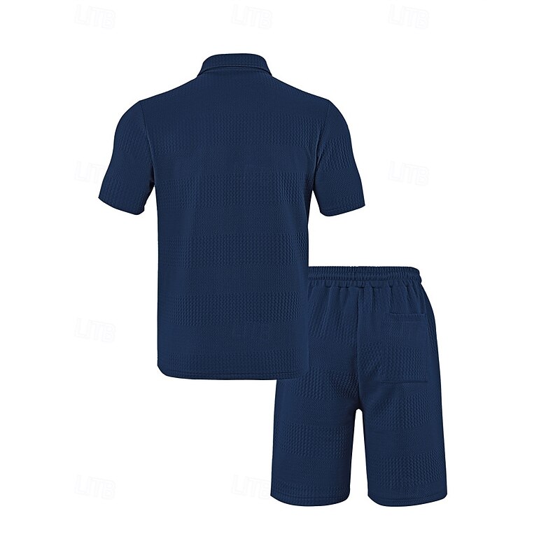 More information about Men's Jacquard Tracksuit Polo Shirt & Shorts Set Outfit Set Lapel Outdoor Daily Sports Pocket Drawstring 2 Piece Plain Black White Navy Blue Polyester Activewear Classic Casual Summer
