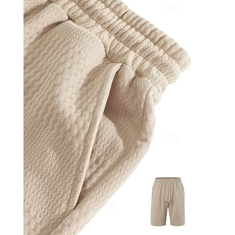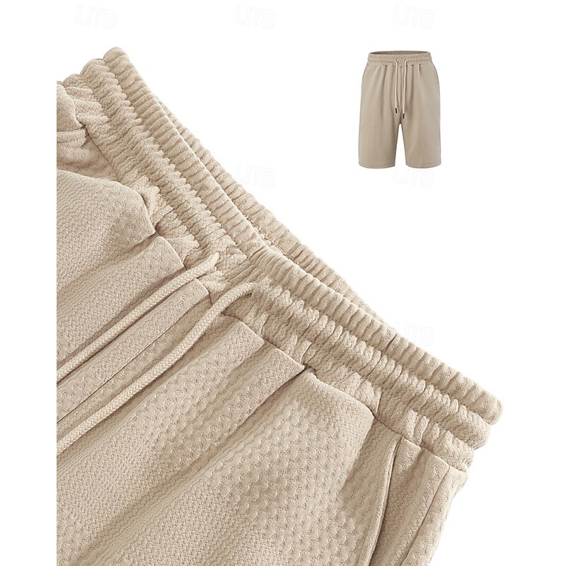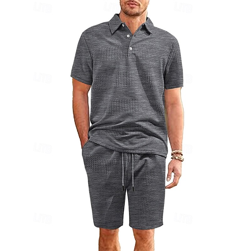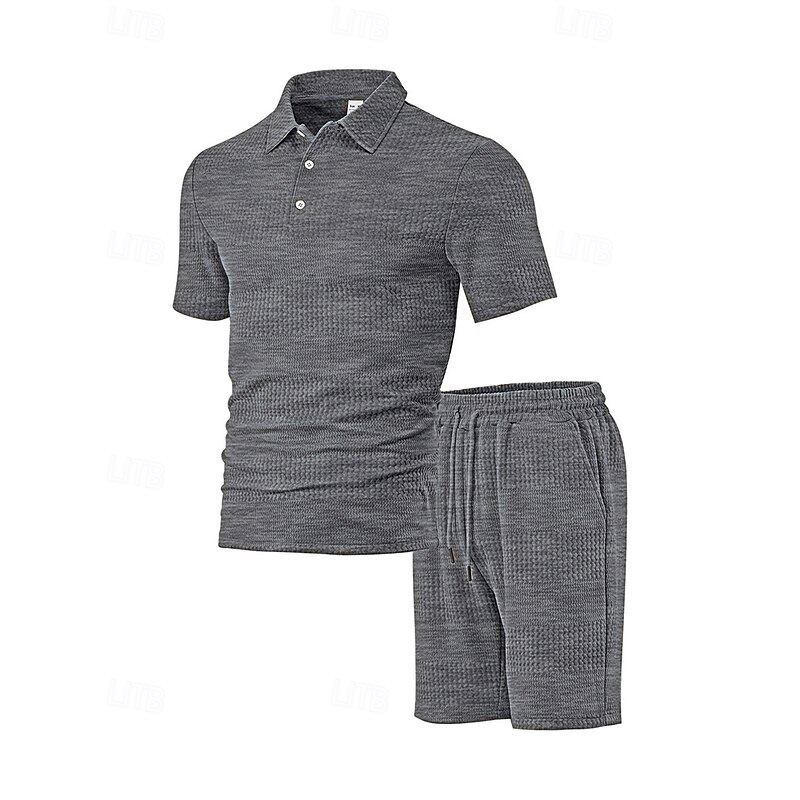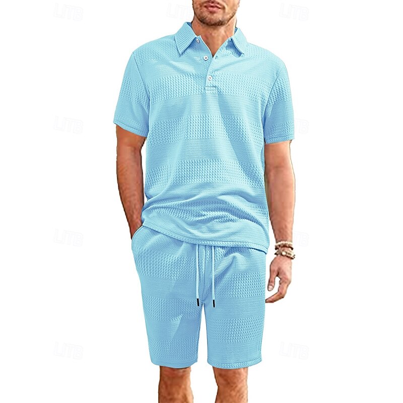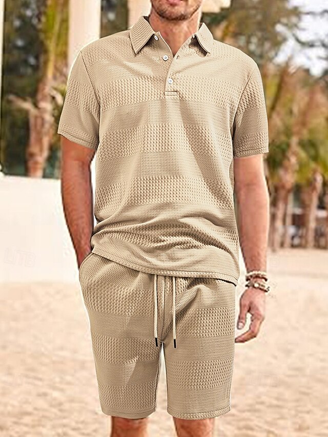 More information about Men's Jacquard Tracksuit Polo Shirt & Shorts Set Outfit Set Lapel Outdoor Daily Sports Pocket Drawstring 2 Piece Plain Black White Navy Blue Polyester Activewear Classic Casual Summer