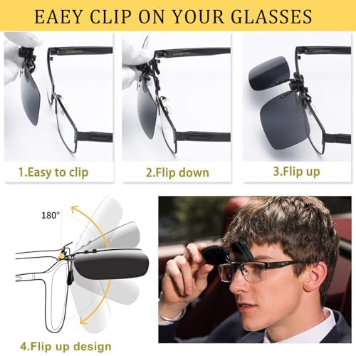 • Fits Most Frames & Easy Application - Clip on your prescription glasses, fits both Metal and Plastic frames, full-frame and rimless frame except. Just clip on and go! Saving Hundreds of dollars instead of getting new prescription Sunglasses!