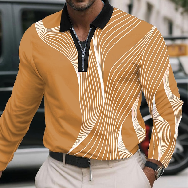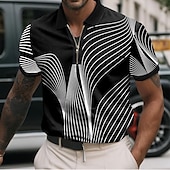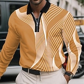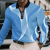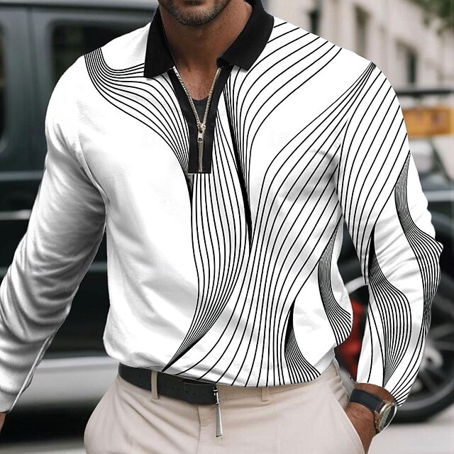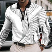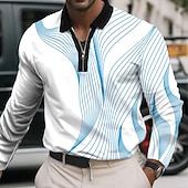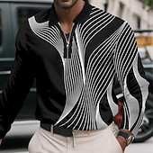 More information about Men's Geometric Line Polo Long Sleeve Polo Shirts Lapel Business Casual Athleisure Daily Wear 3D Print Quarter Zip Polo Spring Fall Winter Black White Blue