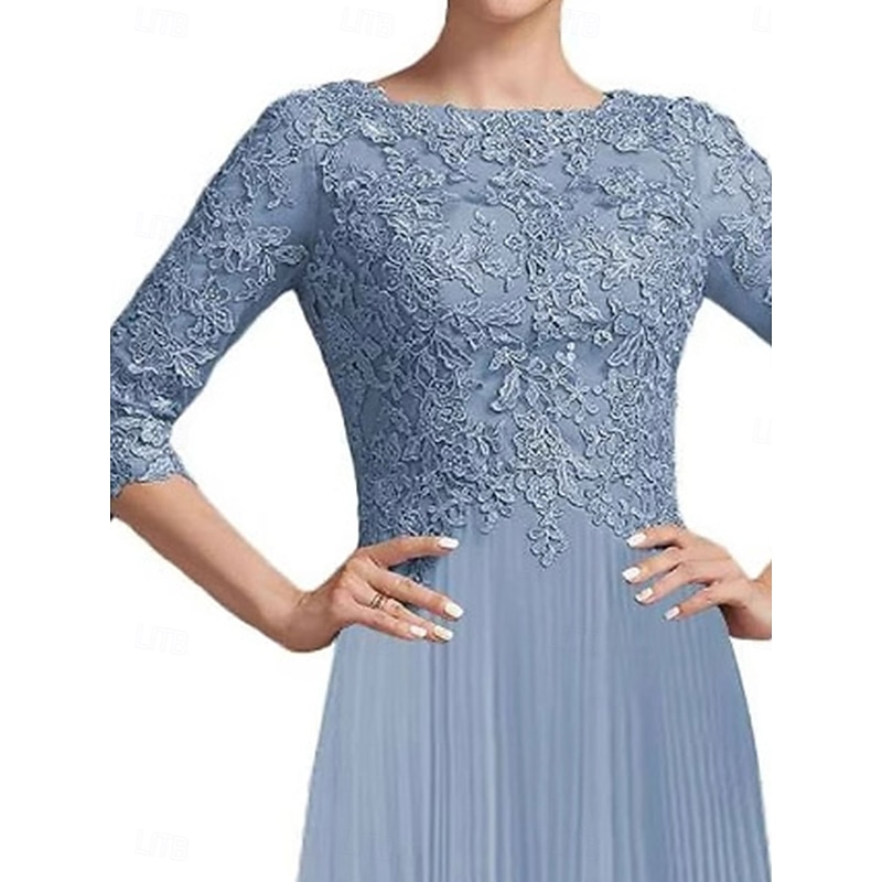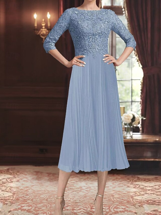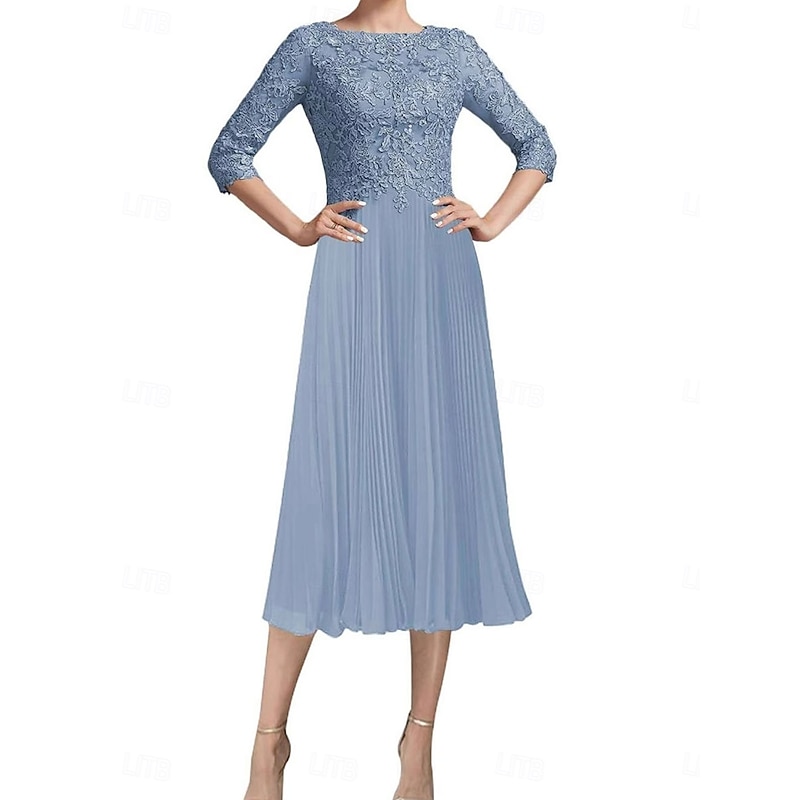 More information about Dress Mother of the Bride Dress Elegant Vintage Simple Crew Neck Tea Length Polyester 3/4 Length Sleeve with Lace Solid Color