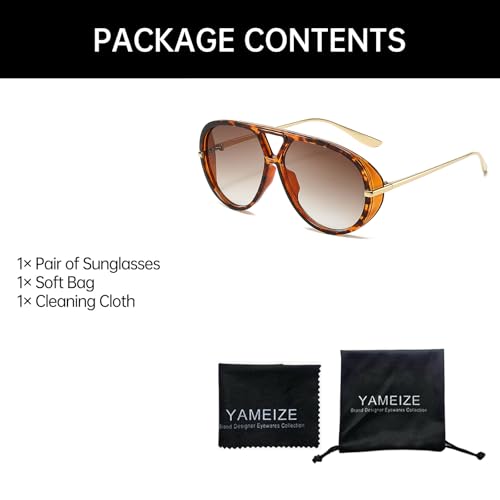 More information about YAMEIZE Oversized Pilot Sunglasses for Women Men Round 70s Retro Double Bridge Vintage Large Big Frame Punk Sun Glasses UV400