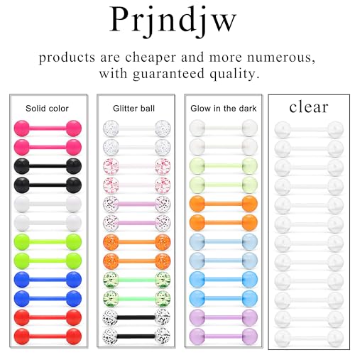 sought-after ! Prjndjw 48Pcs 14G 16mm 14MM Glow in Dark Tongue Nipple Ring Plastic Flexible Acrylic Straight Barbell Body Piercing Jewelry for Women Men Tongue NIppie piercings