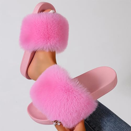 Ladies Fluffy Slippers Faux Fur Soft Slippers Stylish Open Toe Girls Sandals Outdoor Indoor Furry Comfortable 6