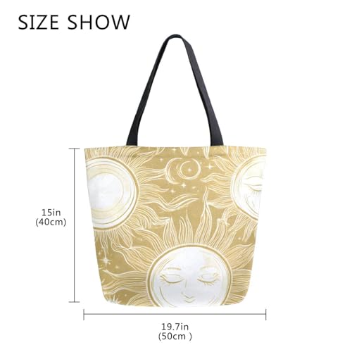 Why Choose Extra Large Shoulder Tote Bag for Beach Travel Weekender Gym Glowing White Sun Moon Pattern Reusable Grocery Canvas Shopping Bag?