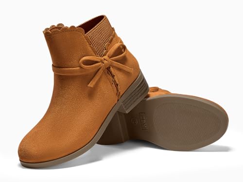 Coutgo Girls Toddler Bow Ankle Boots Pull On Low Chunky Heel Fall Dress Booties Shoes