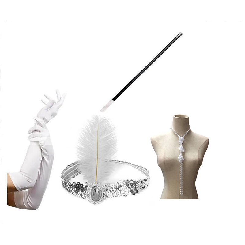 $24.99 - The Great Gatsby Charleston Roaring 20s 1920s Vintage Inspired Gloves Necklace Flapper Headband Women's Feather Costume Vintage Cosplay Party Prom Gloves / Cigarette Stick / Plastic / Solid Colored 2025. Shop for cheap Accessories and More online? Buy at lightinthebox.com on sale today!