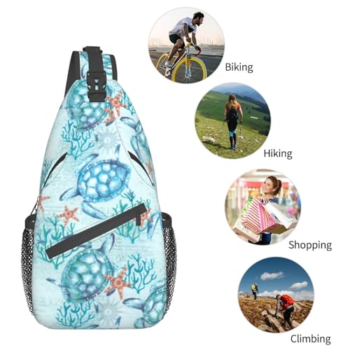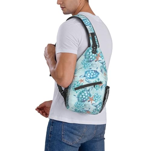 • 【Dimension】 Our sea turtle sling bag is 3.5x7.5x15.3 Inches, standard size with reasonable capacity which can meet your daily needs to take out a variety of trivial things such as cellphone, keys, wallet, camera, sunglasses, tissues and even the diapers. It is very convenient to use when you go out. Above all, you can carry this bag on your chest and don't need to worry about losing items.