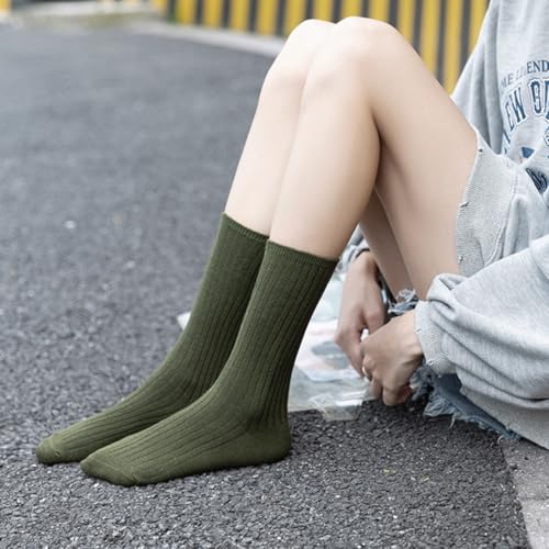 Women Crew Dress Socks Cotton Solid Color Slouch Sock for Dressy Shoes 5 Pack
