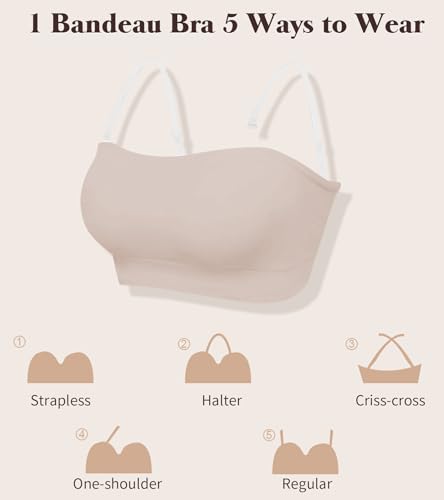 Strapless Bras for Women, Bandeau Bra, Strapless Push Up Bra, Tube Top, Anti Slip Wireless with Clear Strap 5