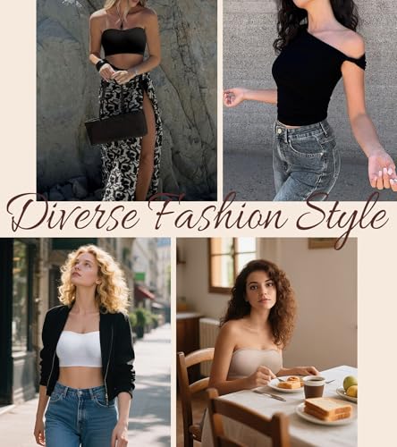 • Exquisite Design Details: Lynclare strapless bras for women has 4 hidden top hooks and a pair of removable clear straps for easy style switching. Bandeau bras with 360° silicone lining stay secure during intense movement. Removable padding maintains shape and comfort.