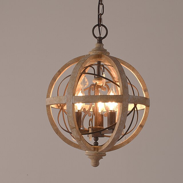 30 cm Globe Design Chandelier LED Pendant Light Wood Industrial Painted Finishes Vintage Country 220-240V 6