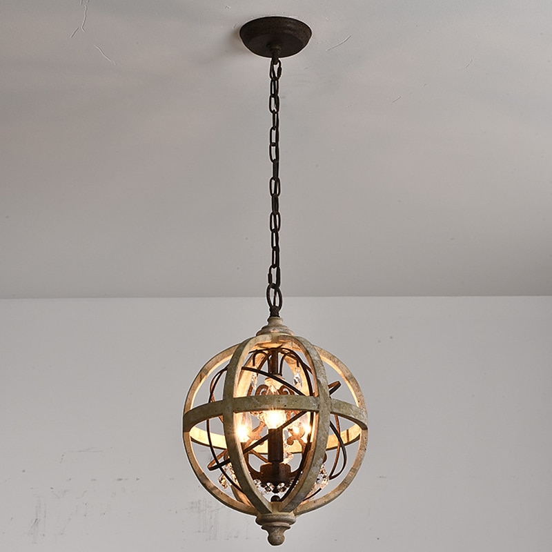 HOT ! 30 cm Globe Design Chandelier LED Pendant Light Wood Industrial Painted Finishes Vintage Country 220-240V