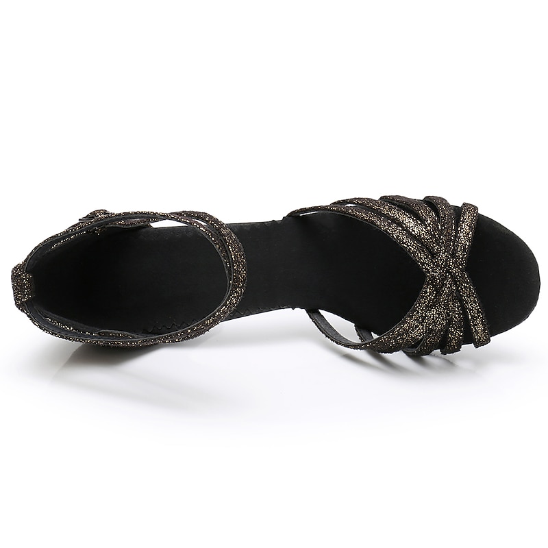 More information about Women's Black Glitter Latin Dance Shoes – Strappy Open-Toe Ballroom Heels with Ankle Strap and Comfortable Suede Sole, Perfect for Salsa, Latin, and Tango Dancing
