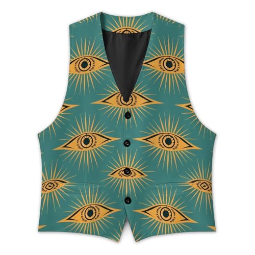 Green Evil Eye Moon Novelty Men's Suit Vest Funny Formal Dress Vests Business Waistcoat